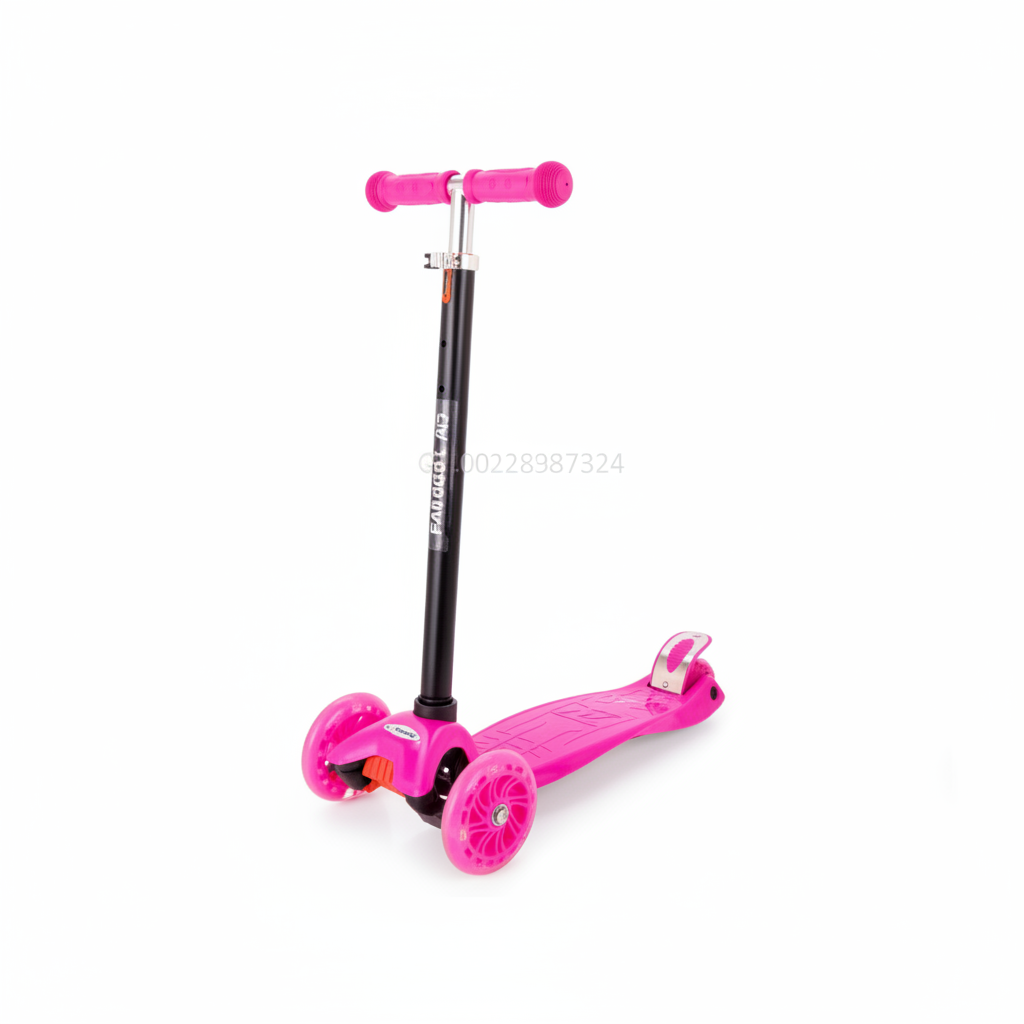 Această trotinetă roz oferă siguranță și distracție datorită roților luminoase și frânei de mână. Designul pliabil și ghidonul reglabil o fac partenerul ideal pentru plimbările zilnice în aer liber. 159lei -