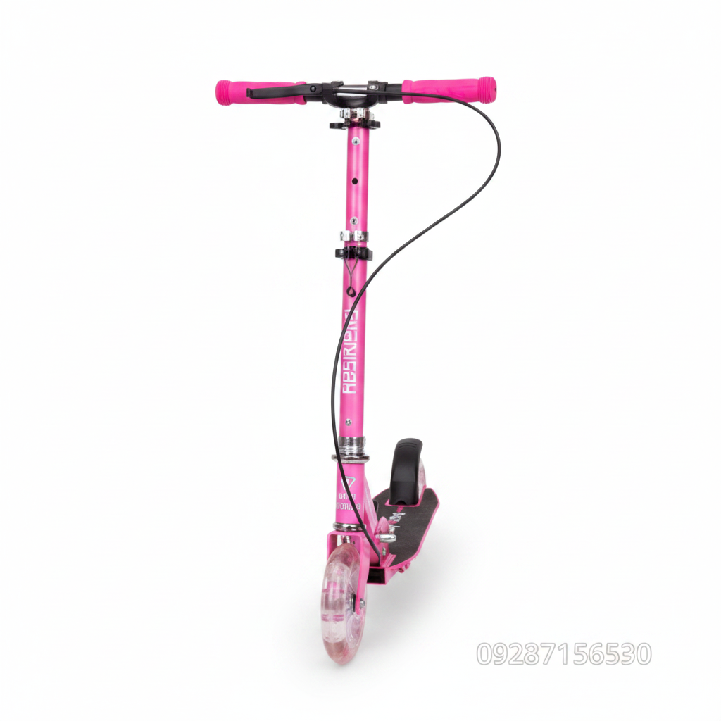 Trotinetă pentru Copii cu 2 Roți Luminoase LED, Frână de Mână și Înălțime Reglabilă, Roz
