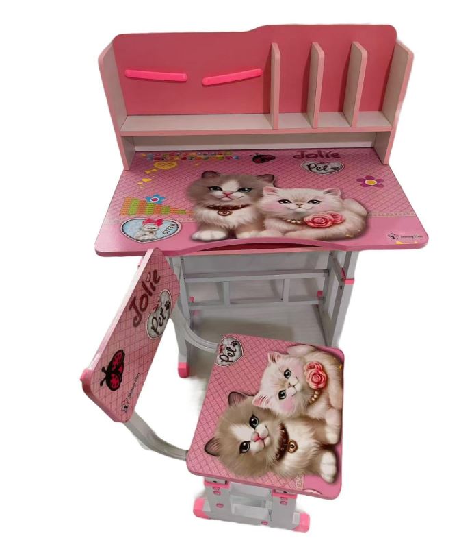 Birou reglabil,cu scaunel si suport carti Pisicuta