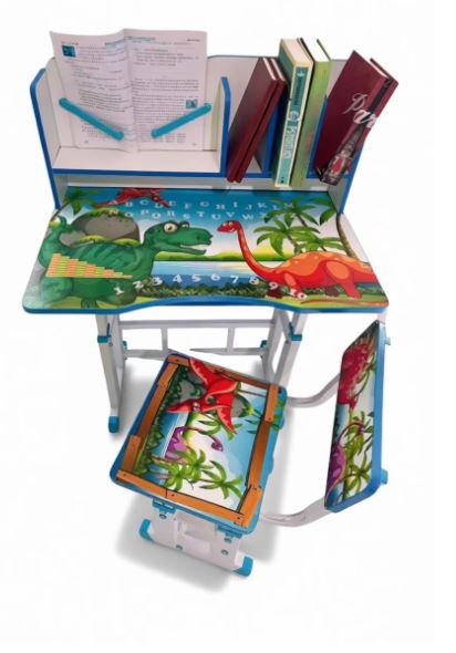 Birou reglabil,cu scaunel si suport carti Dinozauri