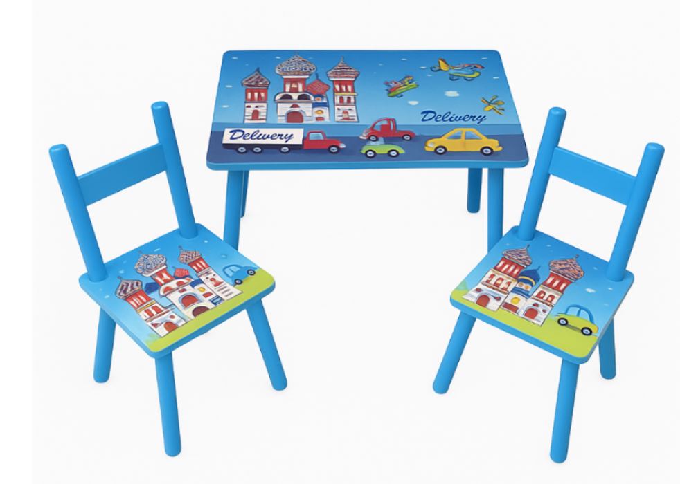 Masa cu 2 scaunele lemn pt copii Oras albastru