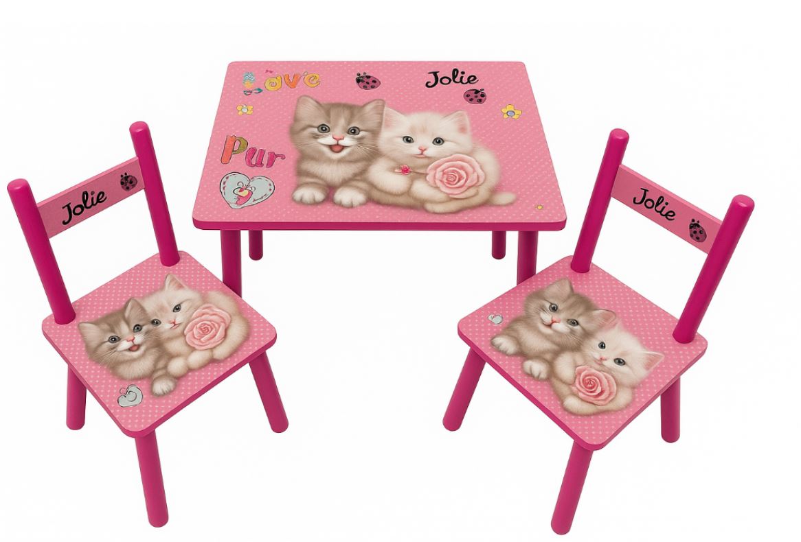 Masa cu 2 scaunele lemn pt copii Pisicute