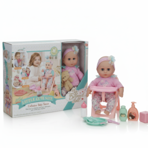• Set Păpușă Bebelus Little Cutie cu Scaun de Masă È™i Accesorii de ÃŽngrijire