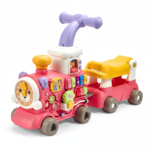• Trenuleț Interactiv 4 în 1 Ride-On pentru Copii, Roz/Multicolor, Panou de Activități, Sunete și Lumini