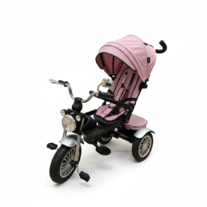 • Tricicletă MultifuncÈ›ională pentru Copii, Model Moto, Roz cu Negru, Far LED È™i Oglinzi