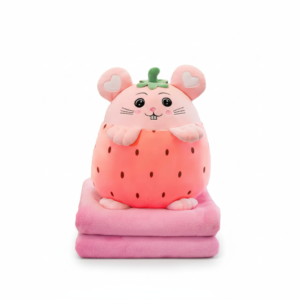 • Jucărie de PluÈ™ 2 în 1 Hamster CăpÈ™ună cu Pătură Moale, Roz