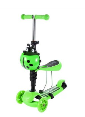 • Trotineta copii 2in1 ,scaunel si lumini,Buburuza Verde