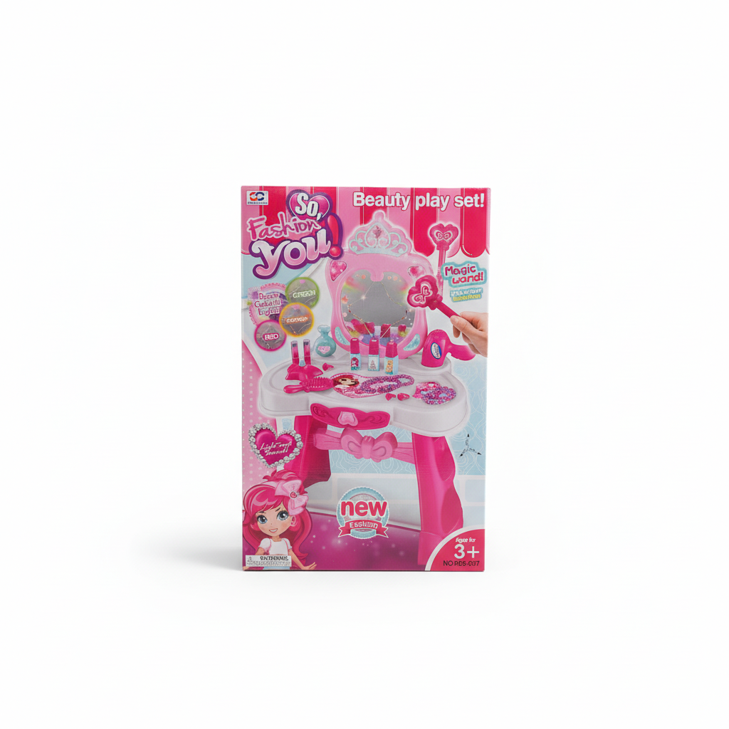 Transforma joaca intr-o experienta de basm cu setul de infrumusetare ‘So, Fashion You!’. Aceasta masuta de toaleta vibranta este conceputa special pentru micile printese care adora jocurile de rol. Caracteristica principala este bagheta magica cu functie de inductie care activeaza luminile colorate si sunetele magice ale oglinzii. Setul este complet echipat cu tot ce are nevoie o tanara domnisoara: uscator de par, perie, sticlute de oja, rujuri de jucarie si bijuterii elegante. Designul ergonomic si culorile vii stimuleaza creativitatea si increderea in sine, oferind ore intregi de distractie interactiva intr-un cadru sigur si distractiv.